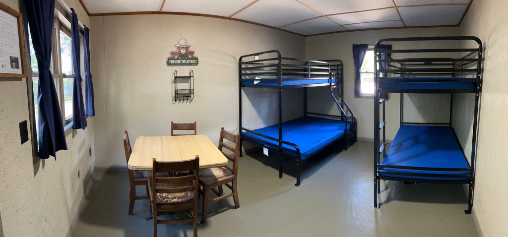 NOTE: Coldwater cabins have been updated with new bunk beds, paint, fixtures and storage. Beds are now twin-over-twin and twin-over-full bunk beds and dressers have been replaced with under bed storage lockers. See new photos below.
