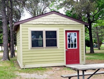 The five cabins at Coldwater Lake Family Park are near the boat launch and close to the lakeshore. The cabins are a great option for those seeking to avoid the setting up of traditional camping equipment such as tents or campers. Each cabin site has its own fire pit, grill and picnic table. The cabins are rustic, meaning they have electricity, but no indoor plumbing or running water. Water is available via an outdoor spigot on each cabin site. The campground bathhouse and nearby vault toilet are available to those staying in cabins.